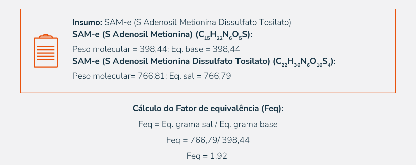 O fator de equivalência é utilizado para realizar o cálculo da conversão da massa do sal ou éster para a massa do fármaco ativo (base), ou da substância hidratada para a substância anidra em relação à forma farmacêutica de referência no qual foram desenvolvidos os estudos clínicos. Muitas vezes, a formação de sais ou ésteres tornam a substância mais efetiva e segura, com condições farmacotécnicas adequadas às necessidades dos pacientes. Trata-se de um valor fixo, que depende da fórmula molecular das substâncias. 1-3