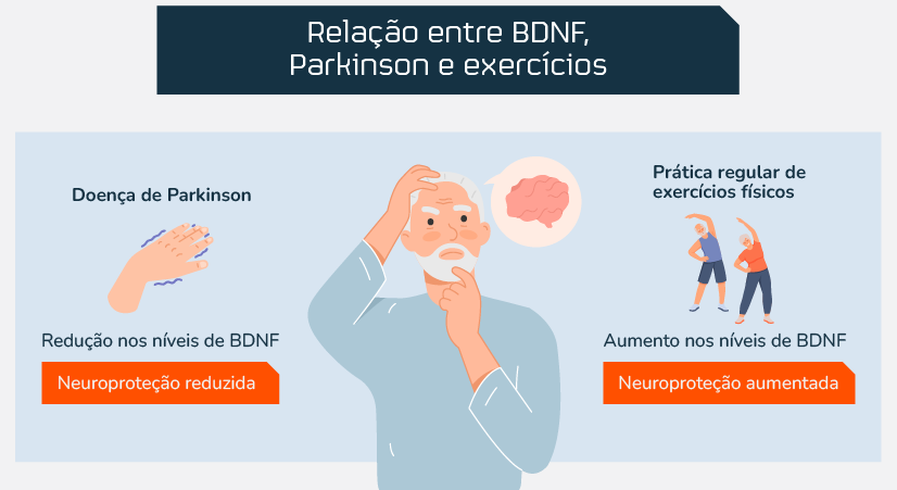 Pacientes com Doença de Parkinson apresentam níveis reduzidos de BDNF. A prática de exercícios físicos é capaz de aumentar os níveis dessa neurotrofina. Imagem adaptada de Shutterstock.com, 2025