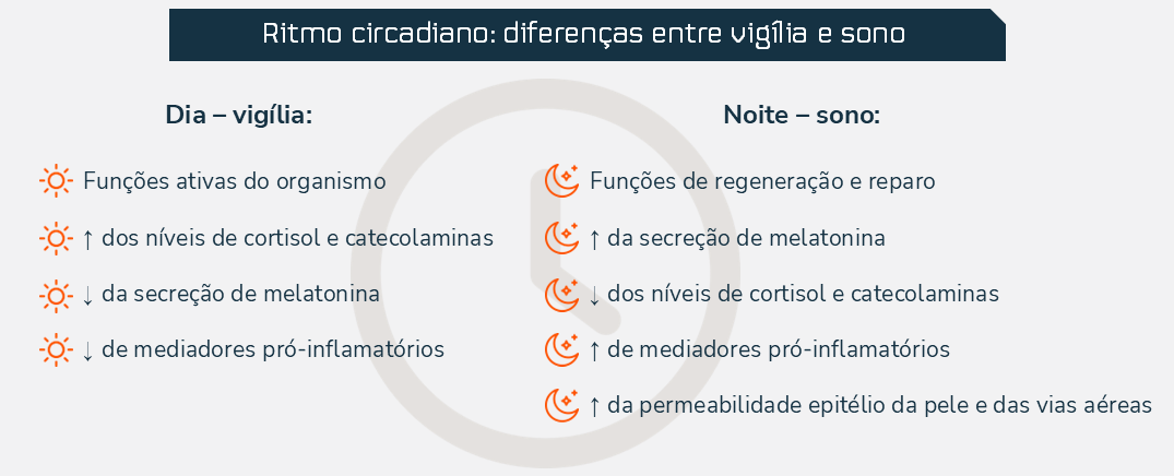 Dessa forma, alterações no ciclo circadiano afetam não somente o sono e o metabolismo, como também modulam a função imunológica e a inflamação, influenciando diretamente a manifestação e a gravidade de doenças alérgicas.1,2